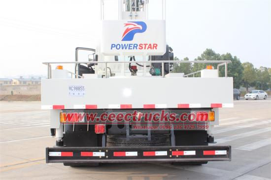 CEEC TRUCKS 4x2 ISUZU GIGA 6UZ1 motor 380HP hava kaldırma kamyonu, orijinal Japon ISUZU kamyon şasisi, Filipinler Pazarı için özelleştirilmiş GIGA 4x2 LHD 20m çalışma yüksekliğinde hava çalışma operasyon aracı temel alınarak üretilmiştir. Yeni tasarlanan 20-22 metre yüksek irtifalı operasyon aracı, katlanır bir krank kolu yapısını benimser, operasyon kolu üç bölümlü katlanır, çalışma kovası ve döner tabla çift çalışma pozisyonuna, yukarı ve aşağı çalışmaya, elektro-hidrolik kontrole, 360 derece dönüşe, dört hidrolik destek ayağına sahiptir, çalışma kovasının içinde motorun çalıştırılmasını ve durdurulmasını kontrol edebilir, bomun bir kaldırma kancası sistemi vardır, kanca kaldırma ağırlığı ≤900kg'dır, insanlı çalışma kovası 250kg'dır, çelik alet kutusu ve desen kaymayı önleyici platform ve paslanmaz çelik çit.''