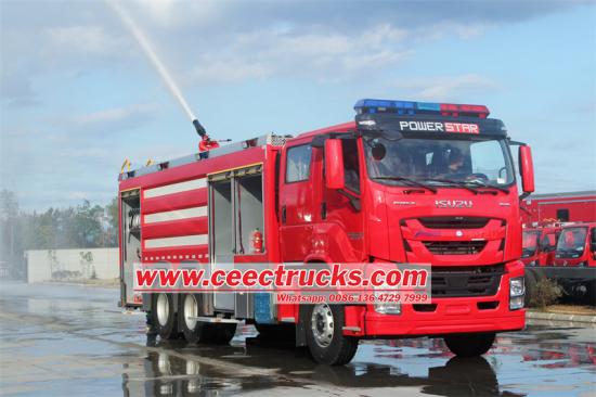 Bu su arıtmalı itfaiye ISUZU GIGA kamyonu, 6*4 tahrik formuna sahip ISUZU GIGA şasisini benimsemiş, ağır hizmet tipi bir şasidir. 420 beygir gücünde nominal güce sahip 6WG1-TCG60 motorla donatılmış, manuel şanzımanla eşleştirilmiş ve 12 ileri ve 2 geri vitese sahiptir. ISUZU GIGA yangın tankeri, 8000L su ve 1500L köpük tank kapasitesine sahip olup, korozyon önleyici özelliklere sahip PP kompozit malzemeden yapılmıştır. Çatıya 45L/s akış hızına ve 55 metreden fazla menzile sahip bir yangın topu yerleştirilmiştir. Ayrıca, ISUZU GIGA itfaiye aracı çeşitli yangın söndürme ihtiyaçlarını karşılamak için uyarı ışıkları, sirenler, yangın pompaları ve diğer ekipmanlarla da donatılmıştır.