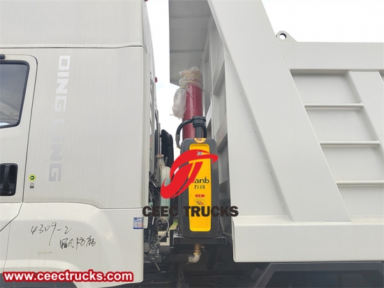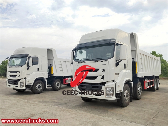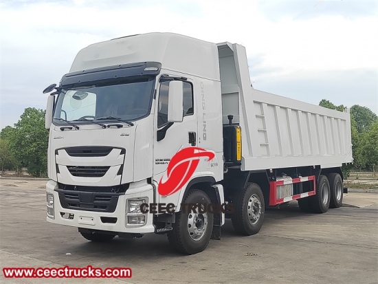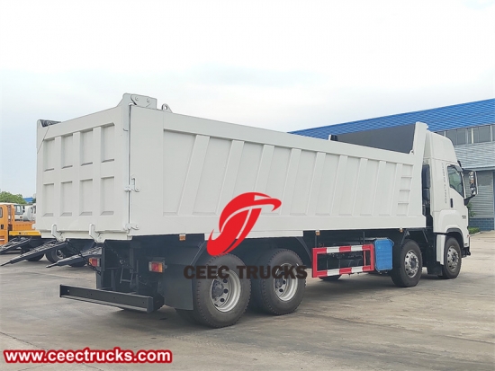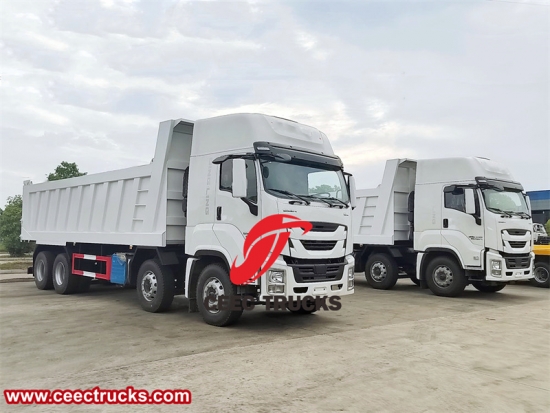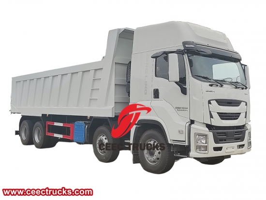 Yeni tasarımlı ISUZU GIGA damperli kamyon, yeni model ISUZU GIGA kabin, 15680ml deplasmanlı orijinal ISUZU 420HP dizel motor, FAST 12 vitesli manuel şanzıman. Kargo gövdesi, HYVA veya Çin'in ünlü hidrolik kaldırma silindirleriyle yüksek mukavemetli karbon çelikten yapılmıştır. Kaldırma modu T tipi ve F tipi olabilir.