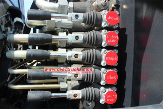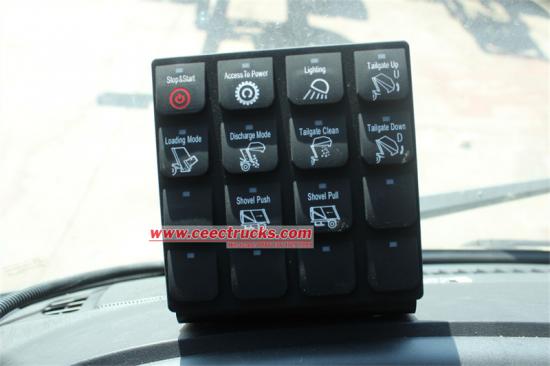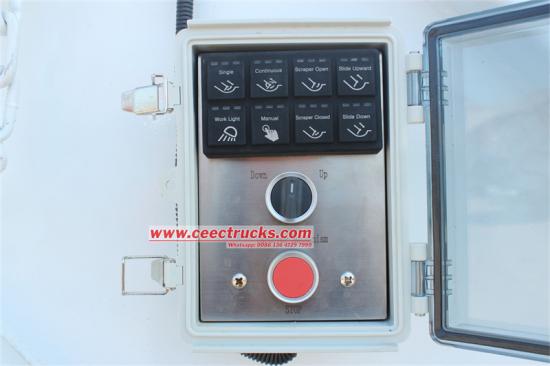 Manuel ve otomatik olmak üzere iki kontrol yöntemi ile operatör kabinde, kamyonun arkasında, çok rahat ve verimli bir şekilde çalışabilir, ayrıca acil fren durdurma düğmesinin çalışma cihazı ile donatılmıştır. |