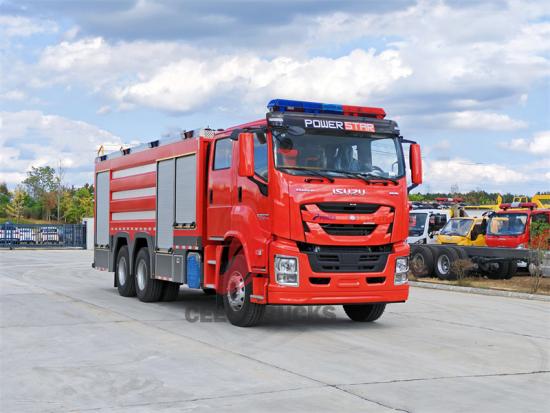 Bu, ISUZU Şasisi üzerine inşa edilmiş kuru toz nitrojenli itfaiye aracıdır. 9.839L deplasmana ve 380 beygir güç çıkışına sahip güçlü bir ISUZU 6UZ1-TCG61 motoruyla donatılmıştır. 6X4 sürüş modunu benimser ve 12 vitesli şanzımanla donatılmıştır. Maksimum hız, çeşitli karmaşık yol koşullarına uyum sağlayabilen 90km/s'ye ulaşabilir. Yangın koruma sistemi açısından, araç iki adet 2.000 litrelik karbon çelik kuru toz depolama tankı ve 15MPa tasarım basıncına sahip 12 adet 80 litrelik nitrojen silindiri ile donatılmıştır. Yangın pompası, 1,6-2,5 MPa basınç aralığına ve 80-120 kg/s akış hızına sahip PTO tarafından tahrik edilir. Yangın topu, 60-100 kg/s'lik bir püskürtme hızına ve 40-60 metrelik bir menzile sahiptir ve çeşitli yangın durumlarına etkili bir şekilde yanıt verebilir. Araçta ayrıca kürek, levye, balta ve kesici takımlar gibi standart yangın kurtarma ekipmanlarının tamamı mevcut olup, merdiven ve projektörler opsiyonel olarak sunuluyor.