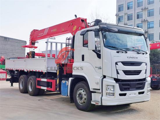 Bu Isuzu GİGA 6x4 mobil kamyon 14 tonluk gövde vinç güçlü ve iyi tasarlanmış bir kamyondur. ISUZU ile donatılmıştır 6UZ1 güçlü bir güce sahip dizel motor 380 Çeşitli iş ihtiyaçlarını karşılayabilen HP. Kabin üç kişiyi alabilecek kapasitededir ve sürücüye konforlu bir sürüş ortamı sağlayan klima ile donatılmıştır. Isuzu'nun üst kısmı BÜYÜK 15 tonluk kargo vinç kamyonu, maksimum kaldırma kapasitesine sahip teleskopik bomlu bir vinçle donatılmıştır 120 00kg ve tam 360° dönüş.