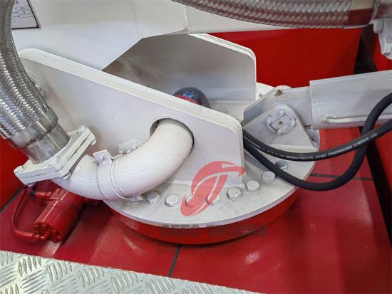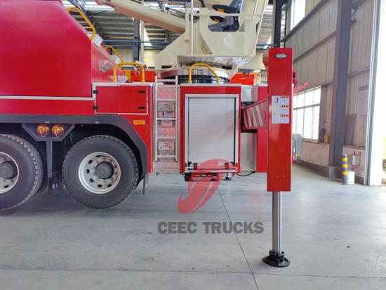 Yangın koruma sisteminin boru hattı paslanmaz çelik boru hattı + alüminyum alaşımlı boru hattıdır. Su borusu, su temini veya köpük ihtiyaçlarını karşılayabilen merkezi döner gövdeden üst araca ulaşır. Üst kol başlığında, su akış şeklini (düz ve su sıçraması) değiştirebilen ve su veya köpük püskürtebilen elektrikli uzaktan kumandalı bir su topu bulunur. Yüksek binaların büyük akışlı yangın söndürme gereksinimlerini karşılamak için aracın alt kısmında bir su girişi vardır.