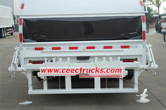 İtme Plakası ve Kompresyon Sistemi:kayar plakalar, kazıyıcılar ve itme kürekleri gibi bileşenler dahil. Kayar plakalar, kazıyıcıları her iki yönde de çöpü ezmek ve sıkıştırmak için çalıştırır ve itme kürekleri çöpü geri basınçla eşit şekilde dağıtarak çöp kutusunun tamamen dolu olduğundan emin olur. Ve aşağıdaki 3B çizim, arka yükleyici kamyon çiziminin ne olduğunu daha iyi anlamanıza yardımcı olur