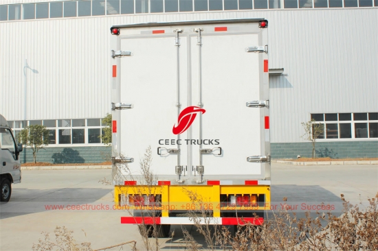 ISUZU 5T Soğutmalı kamyon, ISUZU sol direksiyonlu model 4×2 şasi, MSB 5 vitesli manuel şanzıman, ISUZU 130HP motor. Yüksek performans için Çin'in ünlü soğutma üniteleriyle donatılmıştır, van kapasitesi isteğe bağlı olarak 5-25T olabilir.