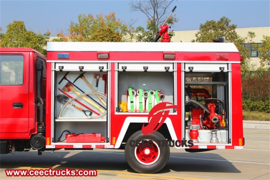 Isuzu mini pompalı itfaiye aracı, Isuzu 100P çift sıralı kabin şasisi temel alınarak modifiye edilmiştir. Araç çift sıralı bir kabine sahiptir ve toplamda 5 itfaiyeci taşıyabilir, bu da itfaiyecilerin yükünü büyük ölçüde artırır, itfaiyecileri yangın mahalline etkili bir şekilde taşıyabilir ve verimliliği büyük ölçüde artırır.
