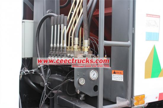 ——Hidrolik sistem:Yakıt tankı, yağ pompası, çok yollu valf, hidrolik silindir, boru hattı vb.'den oluşur. Hidrolik basınç genellikle 16Mpa'ya ayarlanır ve güç, yükleme-boşaltma, sıkıştırma, kaldırma ve diğer eylemleri gerçekleştirmek için güç PTO aracılığıyla motordan alınır.