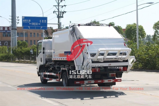Özel yapım ISUZU kancalı kaldırma çöp sıkıştırıcısı, kamyon şasisi ISUZU ELF 700P 4×2 LHD modelidir, ISUZU 190HP dizel motor, ISUZU MLD 6 vitesli şanzıman dişlisi ile donatılmıştır. Kolay kullanım için PLC kontrol kutusu. Tüm boyama ve logolar müşterinin gereksinimine göredir.