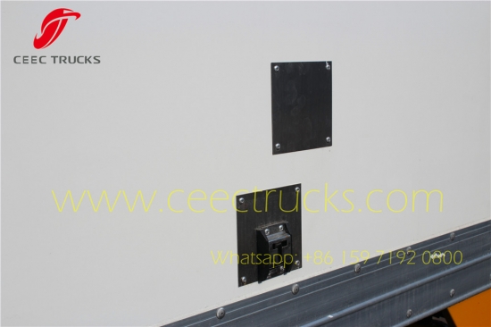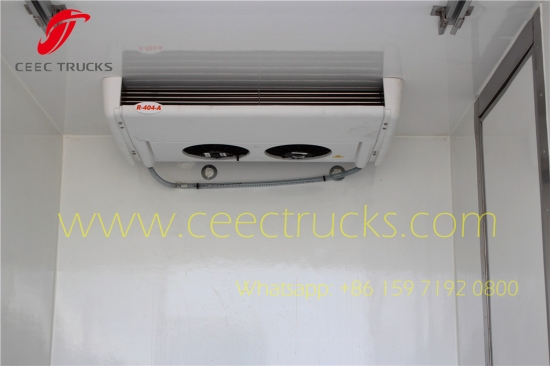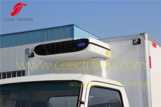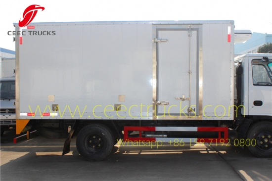ISUZU Soğutmalı kamyon, CEEC Cam elyaf takviyeli plastik malzeme, yalıtım katmanı kalınlığı 8 mm'nin üzerinde. Yüksek performans için standart Amerika Carrier soğutma üniteleri, kutu kapasitesi isteğe bağlı olarak 6-10CBM olabilir. ISUZU LHD şasi, 98HP Japon teknolojisi motor, MSB 5 vitesli manuel şanzıman