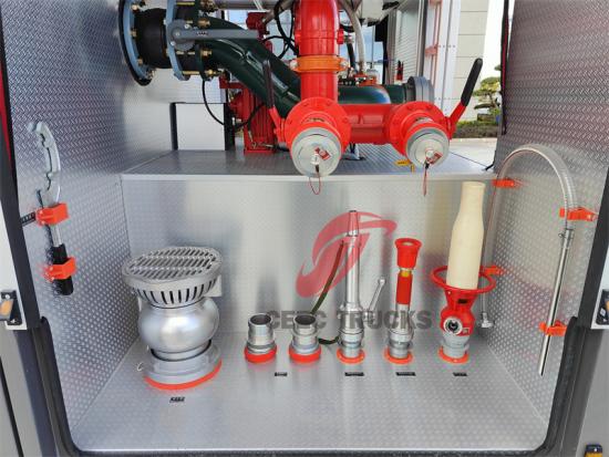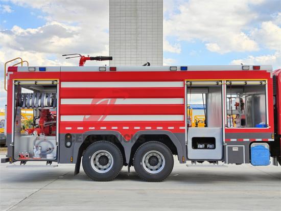 Isuzu VC61 6x4 köpük pompalı itfaiye aracının yangın söndürme sistemi ve köpük sistemi, yangınları etkili ve hızlı bir şekilde söndürmek için birlikte çalışan temel bileşenleridir.