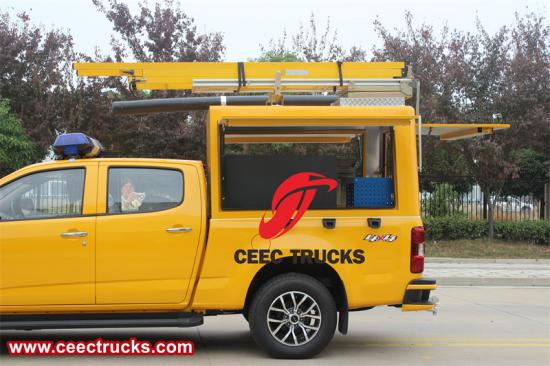 POWERSTAR tarafından üretilen Isuzu 4x4 dört tekerlekten çekişli pikap kamyon mobil servis aracı, Isuzu dört tekerlekten çekişli pikap kamyon temel alınarak modifiye edilmiştir. Araç, 4KH1CT6H1 143HP motorla donatılmıştır, 3406 mm dingil mesafesi sağlar ve 320 N·m maksimum torka sahiptir. Güçlü güce ve yumuşak vites geçişine sahip bir Isuzu MSB 5 vitesli şanzımanla eşleştirilmiştir. Aracın arkasındaki alet kutusu, ihtiyaçlara göre gerekli servis aletleriyle donatılabilir.
