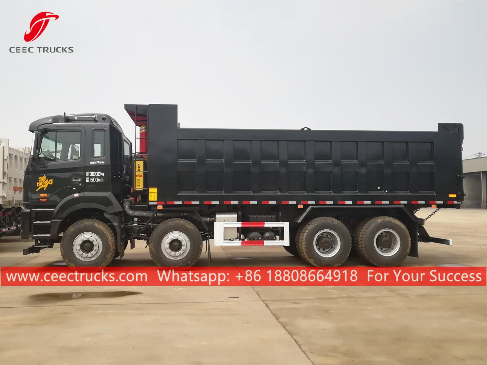 JAC 8x4 damperli kamyon, JAC 8x4 LHD şasi, FAST 10 vitesli manuel şanzıman, ünlü Çin markası WEICHAI 310HP dizel motor, yüksek mukavemetli çelik damperli gövde, isteğe bağlı HYVA veya yerli hidrolik kaldırıcı. Tüm boyama ve logolar gereksinime bağlıdır.
