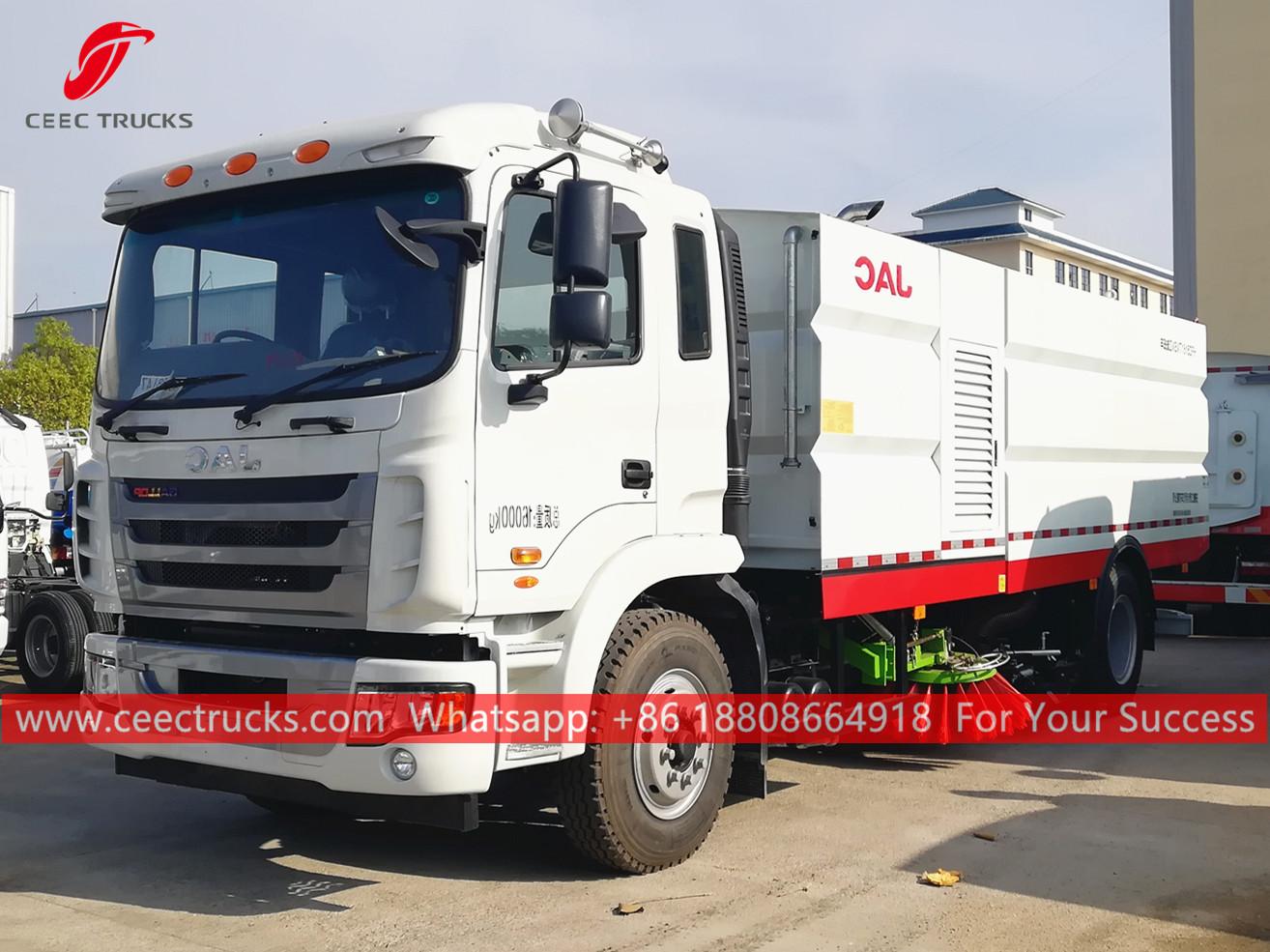 Yol süpürme ve yıkama kamyonu JAC (ayrıca denirJAK yıkama sistemli yol süpürme aracı, hidrolik yol süpürme ve yıkama kamyonu, yıkayıcılı vakumlu yol süpürme kamyonu, JAC yol temizleme kamyonu) dır Asfalt beton ve çimento beton yol yüzeyli mahalle, şehir, otoyol, şantiye, üst geçitler, köprüler, meydanlar, havaalanları ve rıhtımların günlük süpürülmesi için tasarlanmıştır.
