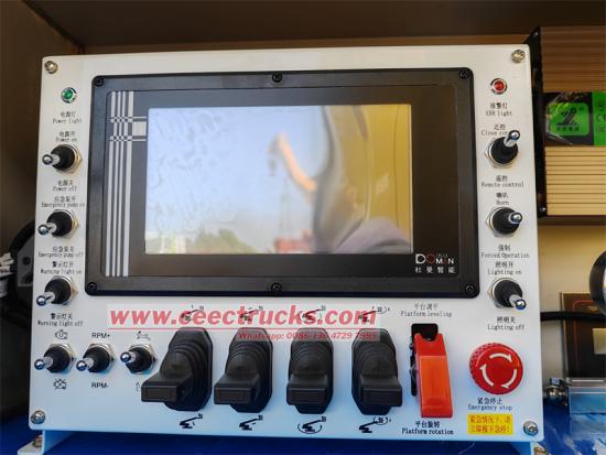 ● Araç, kol uzunluğu, yükseklik açısı, platform yüksekliği, çalışma yüksekliği vb. gerçek zamanlı olarak görüntülemek için 7 inç LCD ekranla donatılmıştır;