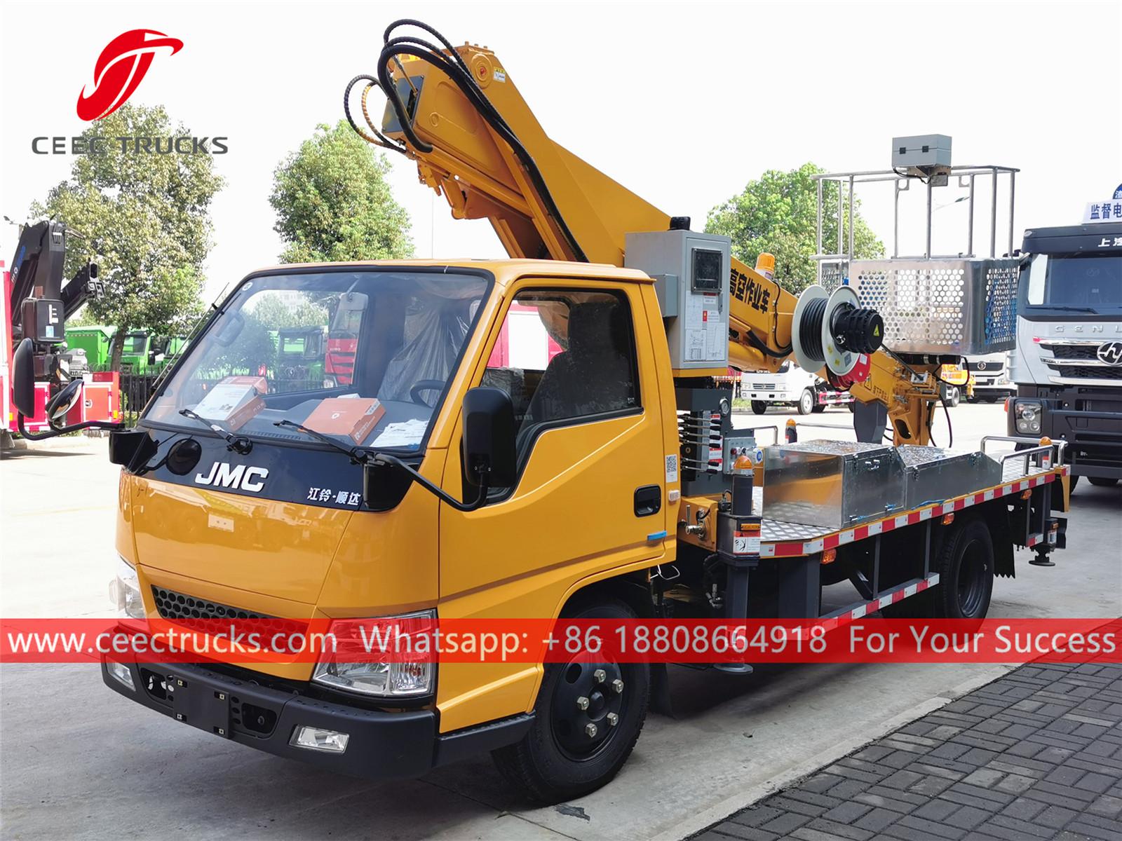 JMC 16m Teleskopik Bom (Ayrıcaisminde Havadan Çalışma Platformu Kamyonu, JMC Kamyon üstü bomlu kaldırıcı, düşük fiyatlı adam kaldırıcı, Yüksek Platformlu çalışma kamyonu, 4x2 Yüksek irtifa çalışma aracı, kol kaldırmalı kepçe kamyonu)trafik ışıkları, sokak lambaları, peyzaj ağaçları bakımı, tabela temizliği/yerleştirme ve diğer yüksekten yapılan işler için idealdir.