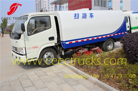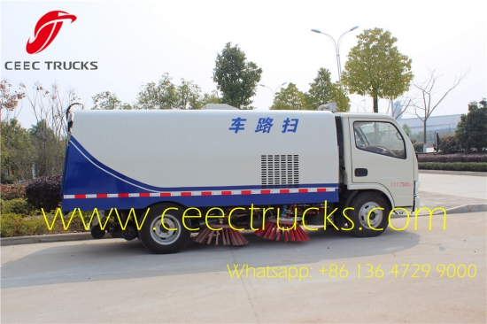 Dongfeng yol süpürme kamyonları, Chaoyang motor 95HP, 5 vitesli manuel şanzıman, 4CBM toz tankı ve 1CBM temiz su tankı ile 5CBM paslanmaz çelik malzeme, Myanmar, Filipinler'e yaygın olarak ihraç edilmektedir