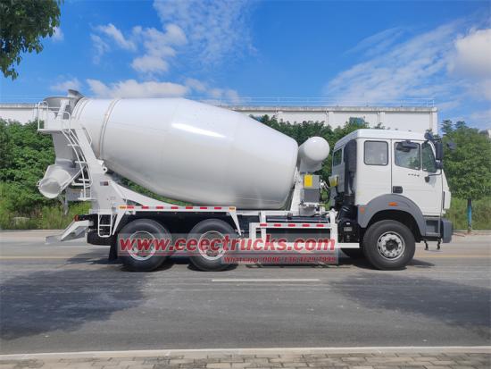 Beiben 6x4 10 metreküp beton mikser kamyonu, 3800+1450 mm dingil mesafesine sahip Beiben NG80B 2634 6x4 şasiyi benimsemiş olup, Weichai WP10.340E32 motor ve Fast 9 vitesli şanzımanla donatılmıştır. Üst karıştırma tankı 10 metreküp kapasiteye sahiptir ve Q355 manganez çelikten yapılmıştır. Tank gövdesi 5 mm, kafası 6 mm ve bıçaklar 4 mm kalınlığındadır. İtalyan Bonfiglioli 577L redüktör, Amerikan Eaton marka 6423-279 hidrolik pompa ve 6433-042 motor, Çin Kaipeng KT-YS-18L radyatör, hava kontrol kutusu düzeneği, 400 L su tankı kapasitesi, hava basınçlı su temini, arkada çift taraflı kontrol kolları, bağlantı çalışması ve düşük kalıntı oranı ile donatılmıştır.
