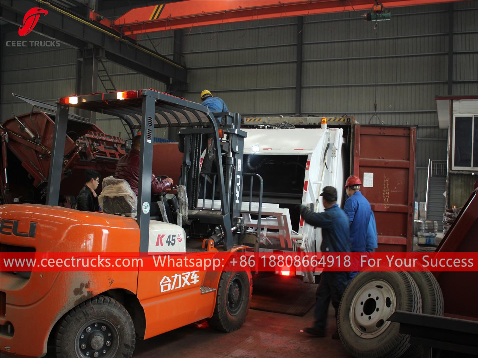 5 CBM, 7 CBM, 8 CBM çöp sıkıştırma kamyonunu konteynerle üretme ve gönderme konusunda harika bir deneyime sahibiz. 8 CBM çöp sıkıştırma kamyonunun tamamını 40 HQ konteynere koymamız sadece 10 dakika sürüyor. Mühendislik departmanı ve üretim departmanının harika çalışması için teşekkürler, onlarla gurur duyuyoruz.