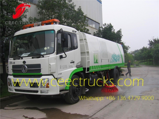 Dongfeng 9m³ yol süpürme kamyonu, LHD ve RHD modeli için dongfeng marka şasi, toz tankı 6CBM ve temiz su tankı 3CBM olan paslanmaz çelik malzemeden tank gövdesi. Filipinler ve Pakistan için 4 fırçalı süpürme cihazı