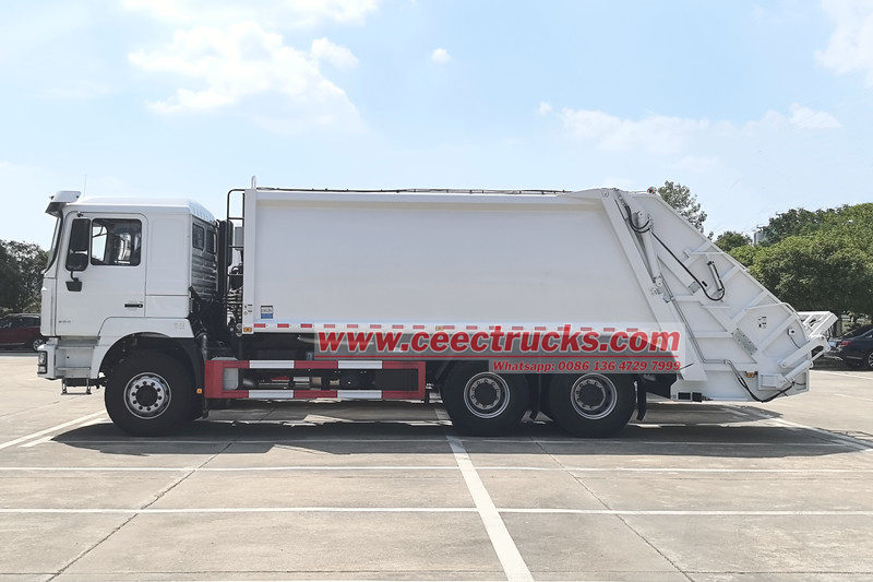 Shacman 25cbm arka yükleyici çöp kamyonu (aynı zamanda Shacman 6x4 atık sıkıştırma kamyonu, Shacman F3000 arka yükleyici çöp toplama kamyonu, Shacman 25cbm çöp sıkıştırma kamyonu, Shacman bölünmüş arka yükleyici çöp kamyonu, Shacman 10 tekerlekli çöp sıkıştırma kamyonu olarak da adlandırılır) Özellikle çöp toplama, taşıma ve uzaklaştırmada kullanılan yeni tip bir sanitasyon aracıdır.