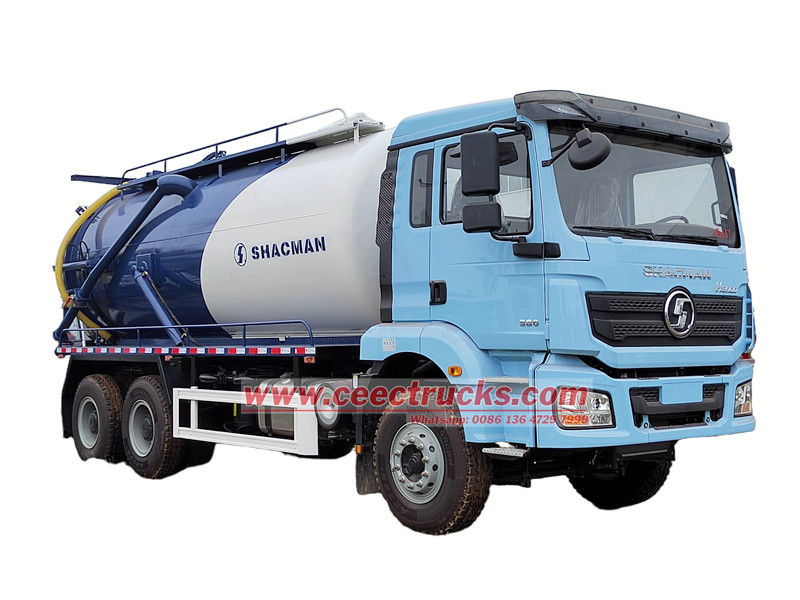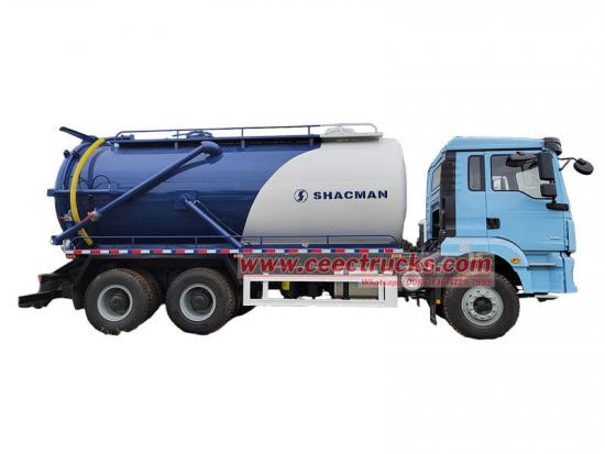 Shacman 6000 galonluk vakumlu tanker kamyonu (ayrıca Shacman 6x4 vakumlu emiş pompası kamyonu, Shacman H3000 septik tank pompası kamyonu, Shacman 22cbm vakumlu emiş kamyonu, Shacman 6x4 kanalizasyon bertaraf tankeri, Shacman vakumlu kanalizasyon emiş kamyonu vb. olarak da adlandırılır.) atık su, çamur, foseptik atıkları, ham petrol ve taş ve tuğla gibi küçük katı atıklar dahil olmak üzere çeşitli malzemelerin toplanması, taşınması ve boşaltılması için tasarlanmıştır. Bu araç özellikle kanalizasyon, foseptik çukuru, çukur ve benzeri ortamların temizliği için uygundur.