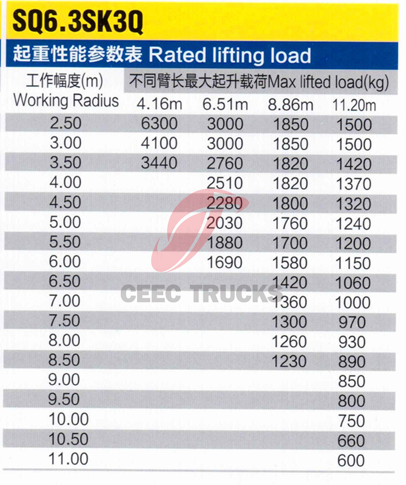 SHACMAN L3000 model Kamyon Vinç, hidrolik kaldırma ve teleskopik sistemler aracılığıyla malların kaldırılmasını, döndürülmesini ve kaldırılmasını gerçekleştiren bir cihazdır. Shacman dropside kargo kamyonu, kamyonların şasisine monte edilir.Genel olarak SHACMAN 4x2 model kamyon şasisi, Dropside kargo bölmesi kutusu, güç çıkışı, XCMG SQS157 model 6.3 ton düz bomlu vinç (vinç kolu, kaldırma torku, şasi, bacaklar vb. dahil) ve tam gövde alt kirişi ve diğer bileşenlerden oluşur. Yepyeni Vinç kamyonu Shacman L3000, kamyon kabini ve boyası %100 özelleştirilebilir.