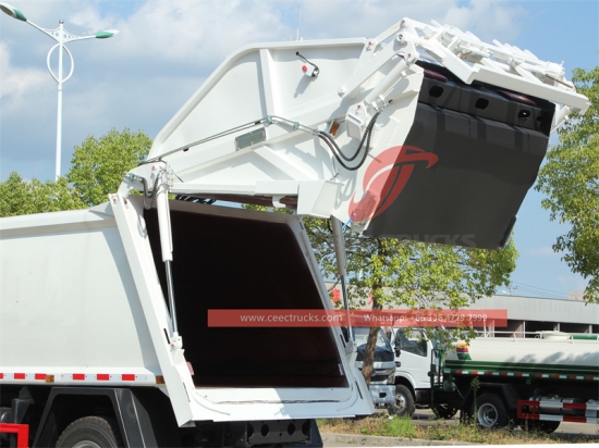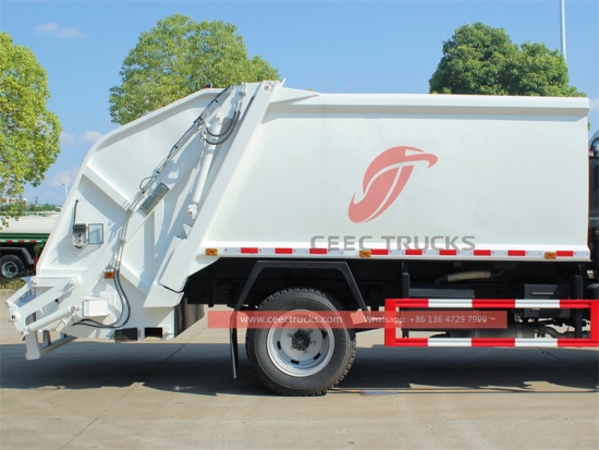 CEEC KAMYONLARI Üretilen çöp sıkıştırma gövdesi, 8 metreküp hacimli kutu, çöp kutusu çevirme cihazı ile arka, 120L / 240L / 660L / 1100L çöp kutularını çevirebilir, kontrol paneli + manuel kol + kabin içi kontrollü. Yeni düz yay şeklindeki araba gövdesi, araba gövdesinin malzemesi Wuhan Iron and Steel'in yüksek kaliteli karbon çeliğidir, etkili sıkıştırma hacmi 8 metreküptür, PLC tek tuşla çalışma kontrolü, entegre el feneri çalışma modu, her iki tarafta çift elektrik kontrolü, kabin çalışması ve güçlendirilmiş zemin desteği, İki yönlü sıkıştırma, açık ve kolay temizlenebilir kanalizasyon tankı.