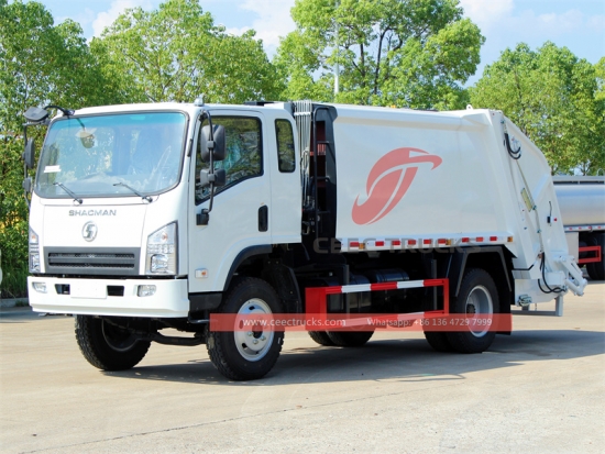 Shacman 8cbm atık sıkıştırma kamyonu, kamyon şasisi YUCHAI 140HP dizel motor, manuel 6 vitesli şanzıman dişlisi kullanır. Kolay kullanım için PLC kontrol kutusu. Tüm boyama ve logolar müşterinin gereksinimlerine göre yapılır.