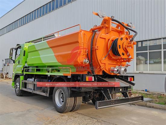 1. Verimli atık su arıtma kapasitesi: Birleşik tasarım 6 000 litrelik pis su tankı ve 4 000 litrelik temiz su deposu Isuzu'nun temel avantajıdır FVR v akuum tankı kamyon. Kentsel kanalizasyon yönetiminde, yoğun yağmurdan sonra su birikmesi veya ciddi boru tıkanıklığı gibi büyük miktarda kanalizasyonun hızla arıtılması gereken durumlar sıklıkla görülür. Bu kadar büyük kapasiteli bir tankla, operatörler tek seferde daha fazla kanalizasyon arıtabilir ve bu da iş verimliliğini büyük ölçüde artırabilir. Aynı zamanda, 4 000 litrelik temiz su tankı, su eklemek için sık sık gidiş-dönüş yolculuk yapmaya gerek kalmadan boru yıkama ve temizleme işlemleri için yeterli suyun olmasını sağlar. Bu sadece zamandan ve yakıttan tasarruf sağlamakla kalmaz, aynı zamanda araçların yoldaki gidiş-dönüş yolculuklarının sayısını da azaltarak dolaylı olarak trafik baskısını ve karbon emisyonlarını azaltır.