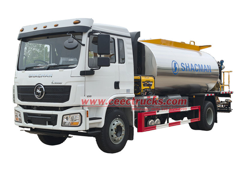 4x4 drive avaiableShacman yol asfalt dağıtım kamyonu, otoyol ve şehir içi yol yapımında kullanılan özel bir makinedir. Yalıtım kabı, asfalt pompası, ısıtıcı ve püskürtme sistemi ile donatılmıştır. Sıcak asfalt, emülsifiye asfalt, artık yağ ve diğer sıvı malzemeleri püskürtebilir.