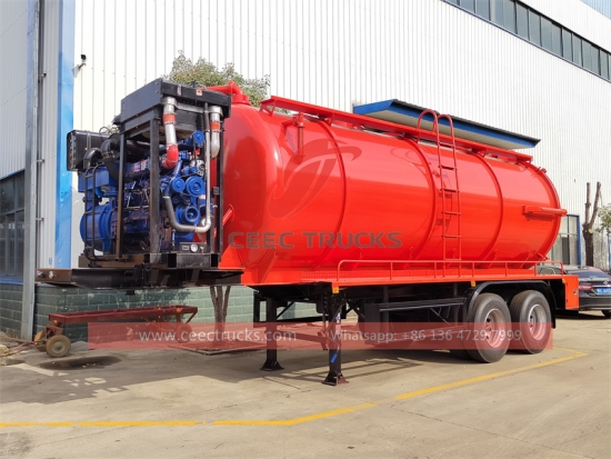 Vakum kanalizasyon tankeri yarı römork(Aynı zamanda Vakumlu tanker yarı römork, kanalizasyon tankeri yarı römork, kanalizasyon tankeri römorku, kanalizasyon yarı römorku, kanalizasyon yarı römorku, kanalizasyon tankeri römorku, kanalizasyon tankı römorku, yarı tanker römorku, paslanmaz çelik kanalizasyon tankeri römorku, karbon çelik kanalizasyon tankeri römorku olarak da bilinir)Petrol, dizel, benzin, gazyağı vb. taşımak için kullanılır.